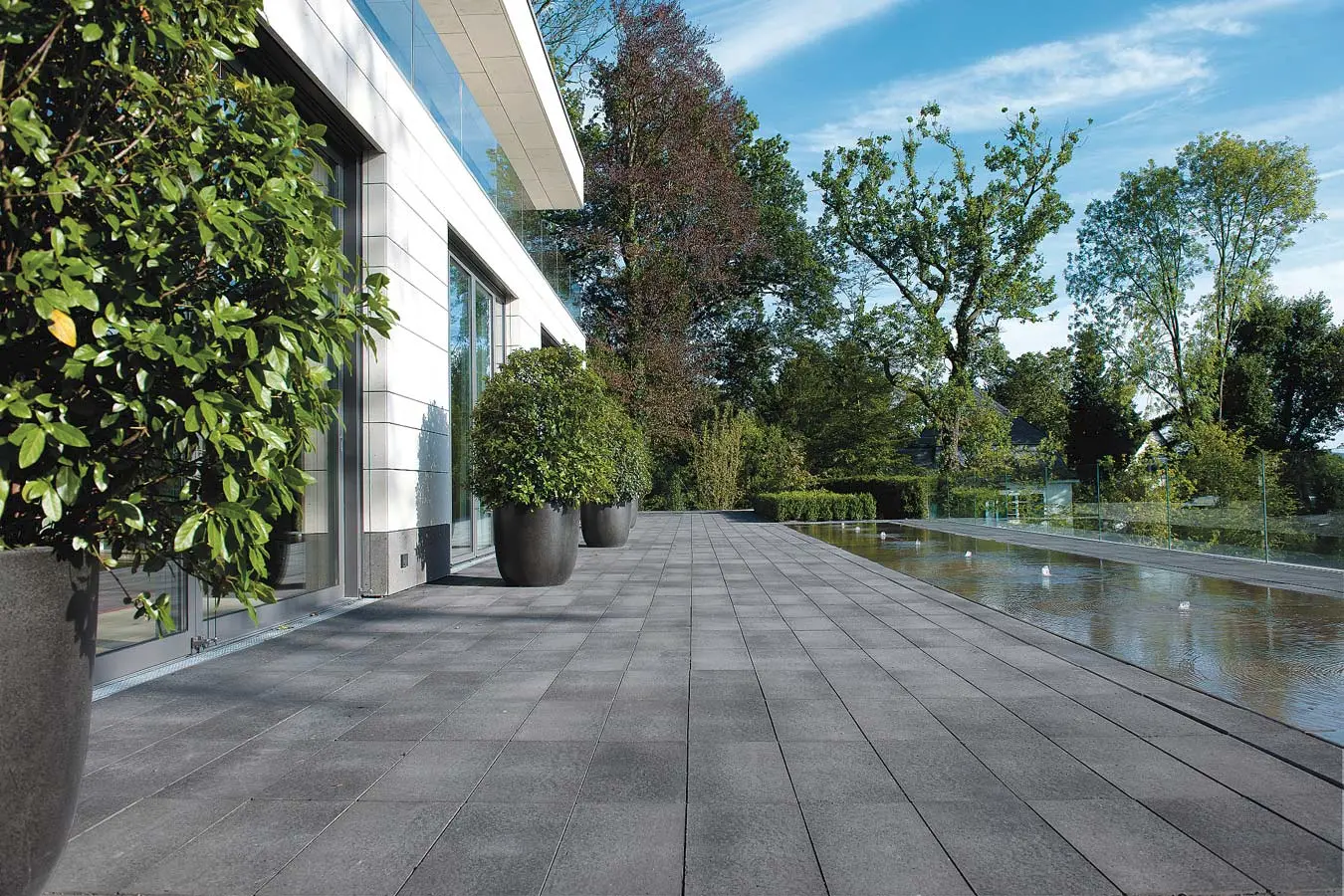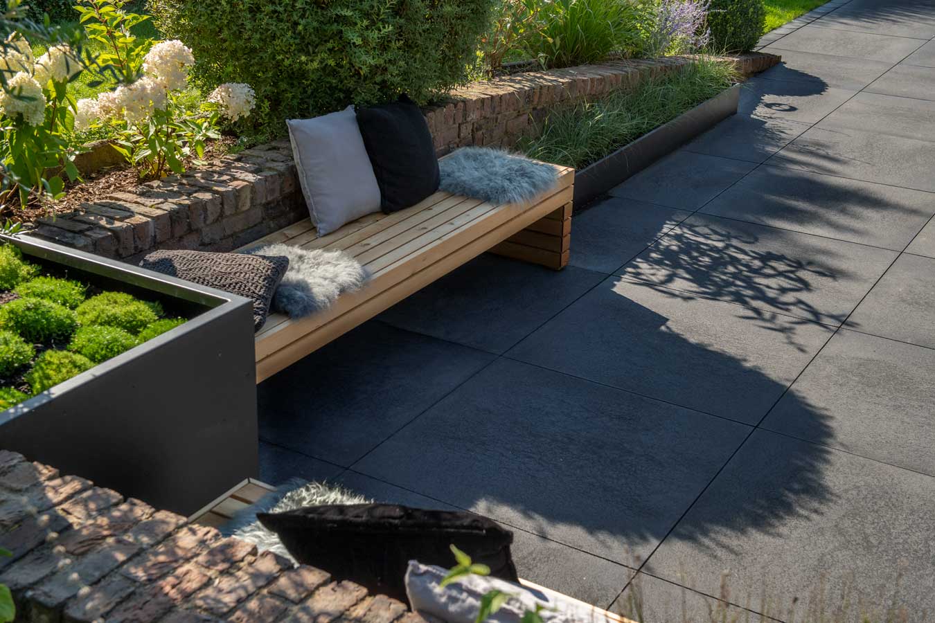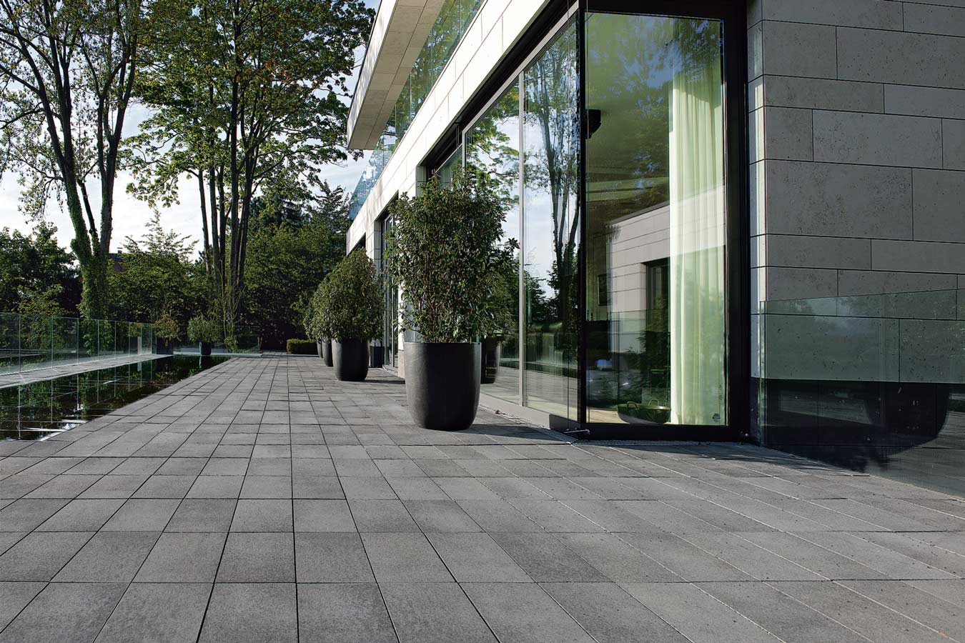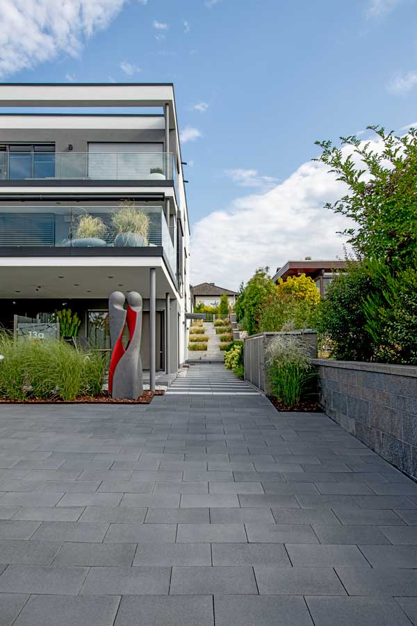 UMBRIANO® zeichnet sich durch ausserordentliche Vielfalt und Qualität in Funktion und Design aus, ist als Pflasterstein und Platte in vielen Farben und Formen erhältlich und seit vielen Jahren auf der ganzen Welt beliebt. Ob als fünf Zentimeter starke Platte für den fußläufigen Bereich oder als acht bis achtzehn Zentimeter starkes Pflastersystem, das höchsten Verkehrslasten standhält – die fein gemaserten Betonsteine Umbriano mit ungefaster Steinkante und der Anmutung gesägter Natursteine sind im privaten wie öffentlichen Bereich beliebt. Und werten Eingangsbereiche, Gehwege, Boulevards und innerstädtische Plätze auf – als jeweils unverwechselbare Unikate mit individueller Maserung im Stein.