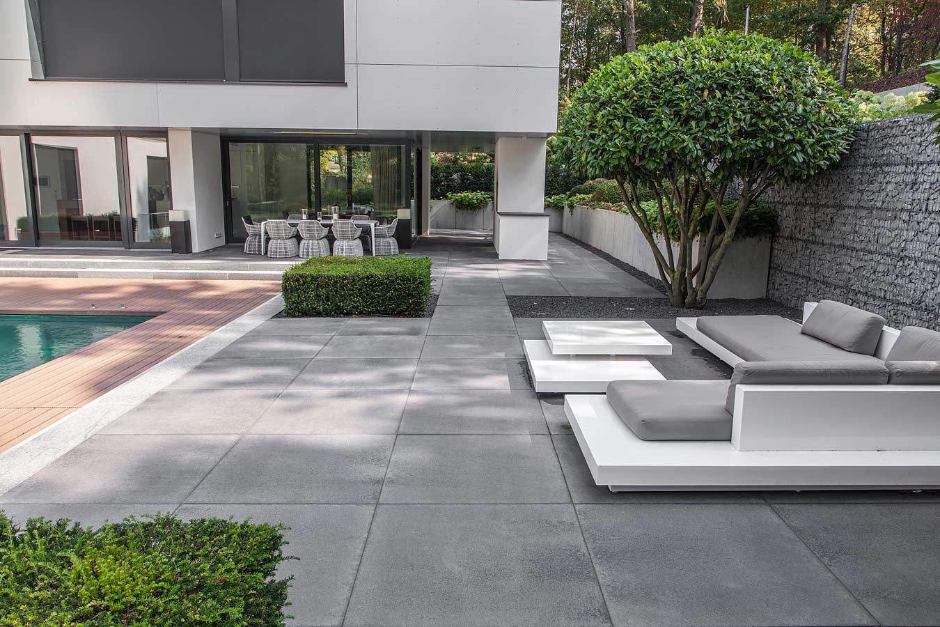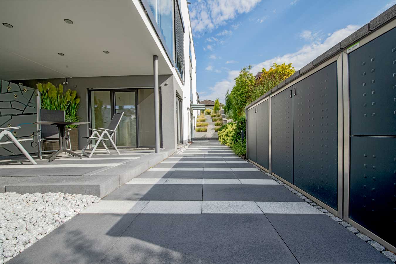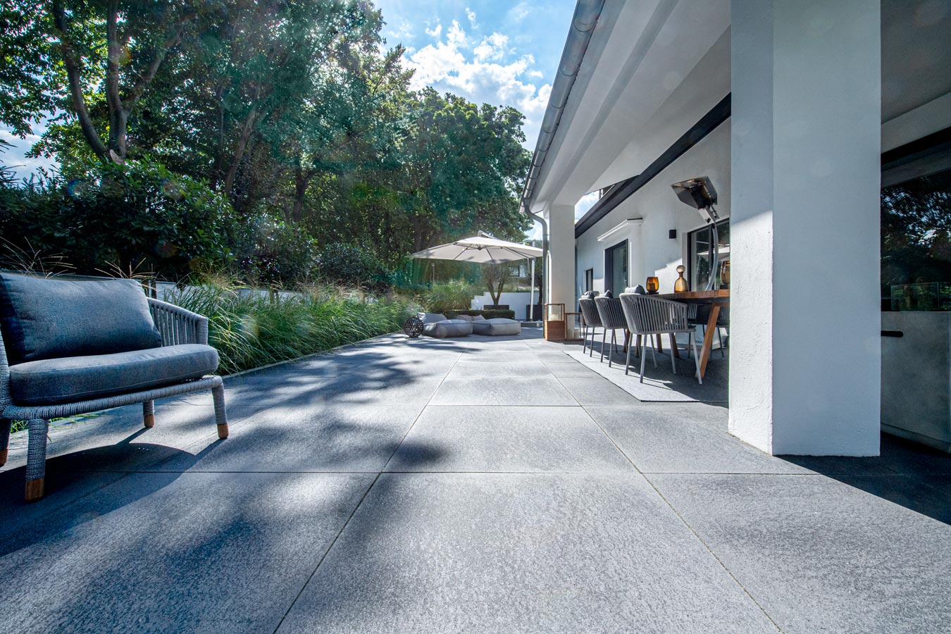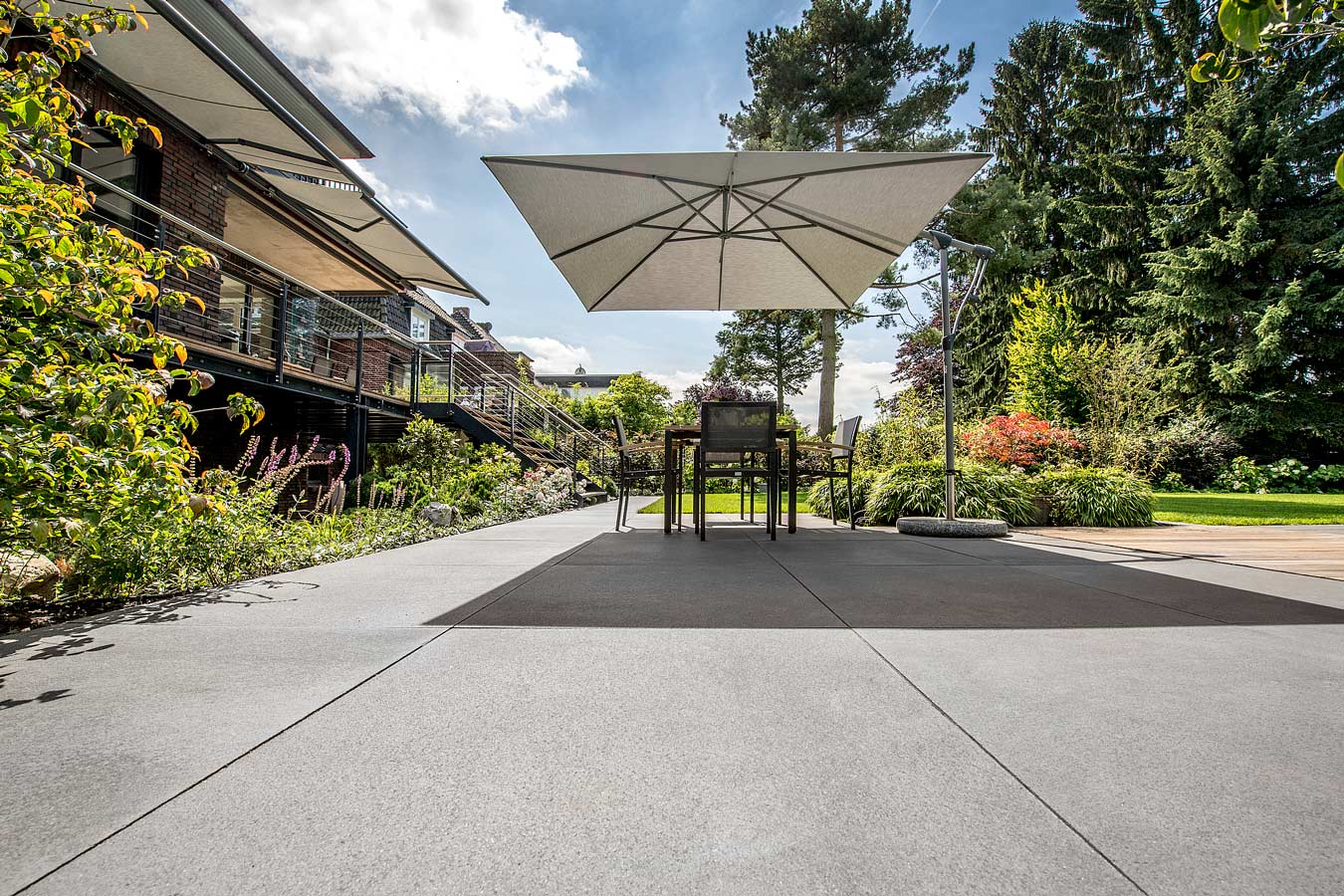 UMBRIANO® zeichnet sich durch ausserordentliche Vielfalt und Qualität in Funktion und Design aus, ist als Pflasterstein und Platte in vielen Farben und Formen erhältlich und seit vielen Jahren auf der ganzen Welt beliebt. Ob als fünf Zentimeter starke Platte für den fußläufigen Bereich oder als acht bis achtzehn Zentimeter starkes Pflastersystem, das höchsten Verkehrslasten standhält – die fein gemaserten Betonsteine Umbriano mit ungefaster Steinkante und der Anmutung gesägter Natursteine sind im privaten wie öffentlichen Bereich beliebt. Und werten Eingangsbereiche, Gehwege, Boulevards und innerstädtische Plätze auf – als jeweils unverwechselbare Unikate mit individueller Maserung im Stein.