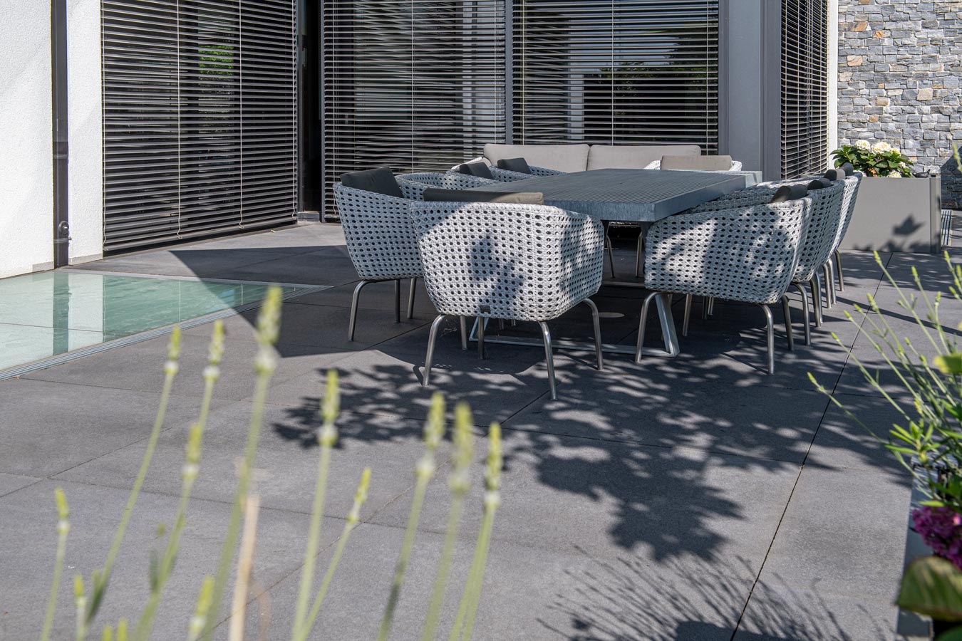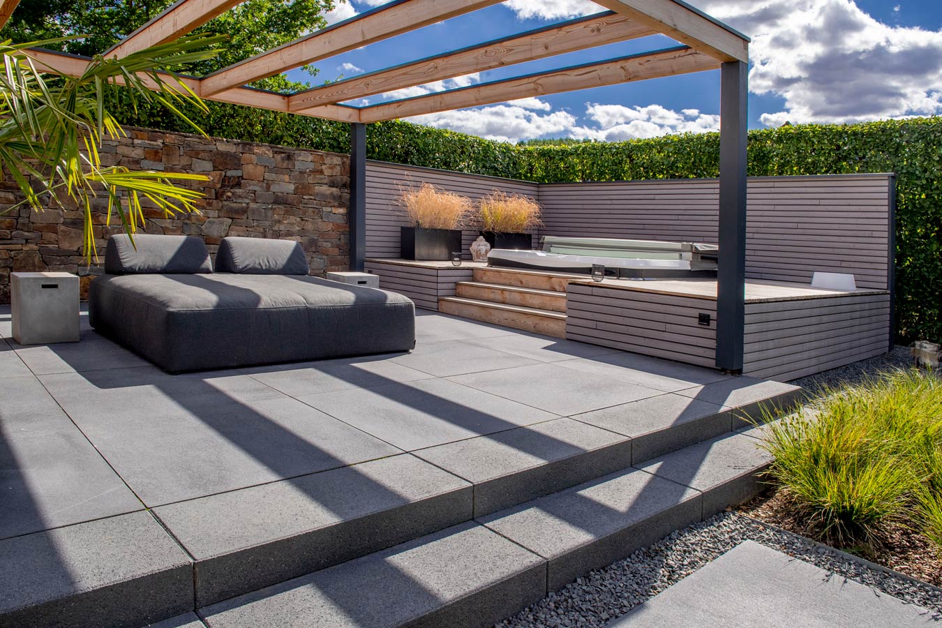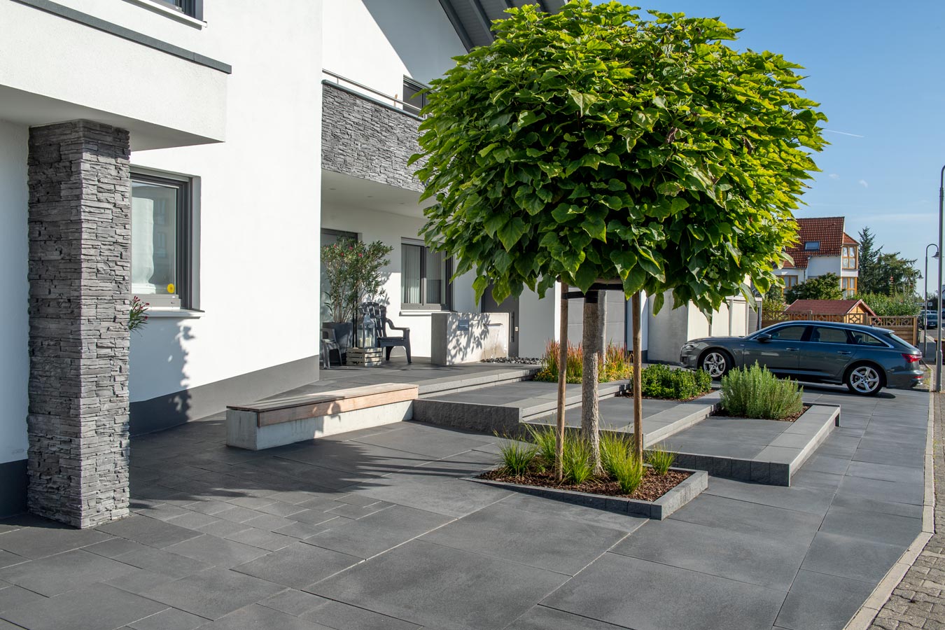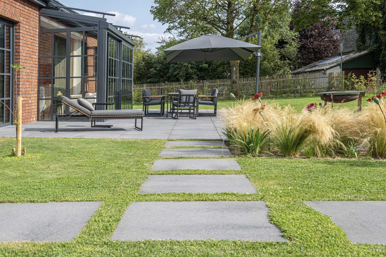 UMBRIANO® zeichnet sich durch ausserordentliche Vielfalt und Qualität in Funktion und Design aus, ist als Pflasterstein und Platte in vielen Farben und Formen erhältlich und seit vielen Jahren auf der ganzen Welt beliebt. Ob als fünf Zentimeter starke Platte für den fußläufigen Bereich oder als acht bis achtzehn Zentimeter starkes Pflastersystem, das höchsten Verkehrslasten standhält – die fein gemaserten Betonsteine Umbriano mit ungefaster Steinkante und der Anmutung gesägter Natursteine sind im privaten wie öffentlichen Bereich beliebt. Und werten Eingangsbereiche, Gehwege, Boulevards und innerstädtische Plätze auf – als jeweils unverwechselbare Unikate mit individueller Maserung im Stein.