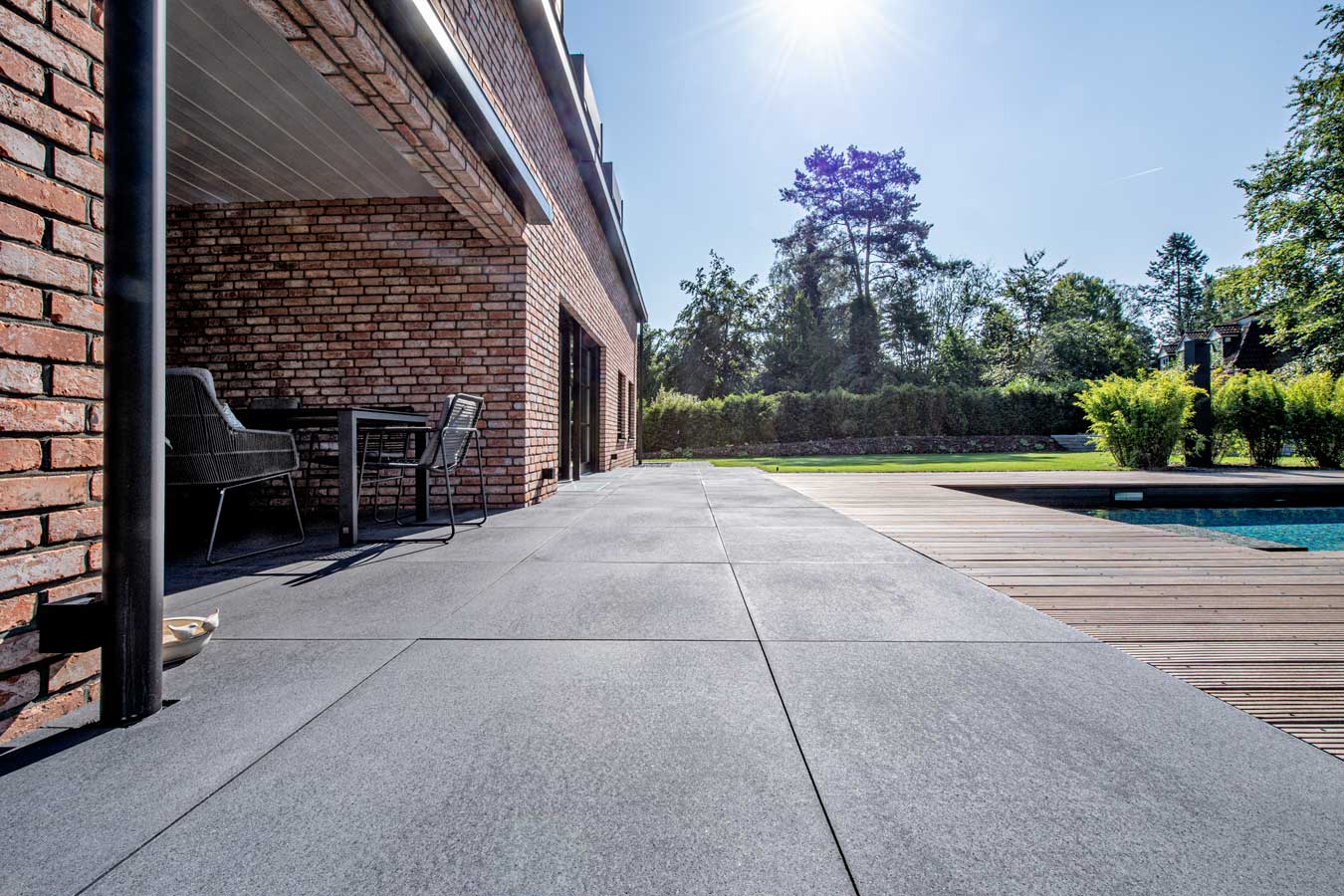 Mit seinen ungefasten Kanten ermöglicht Umbriano® die Gestaltung von ruhig und homogen anmutenden Flächen mit einer sehr guten Begehbarkeit. Der CleanTop®-Oberflächenschutz mit CF 90 erleichtert die Pflege des Steins. Das eigens für Umbriano® entwickelte Herstellungsverfahren ist einzigartig und international patentrechtlich geschützt. Umbriano® wurde mit dem iF product design award prämiert und für den Designpreis der Bundesrepublik Deutschland nominiert.